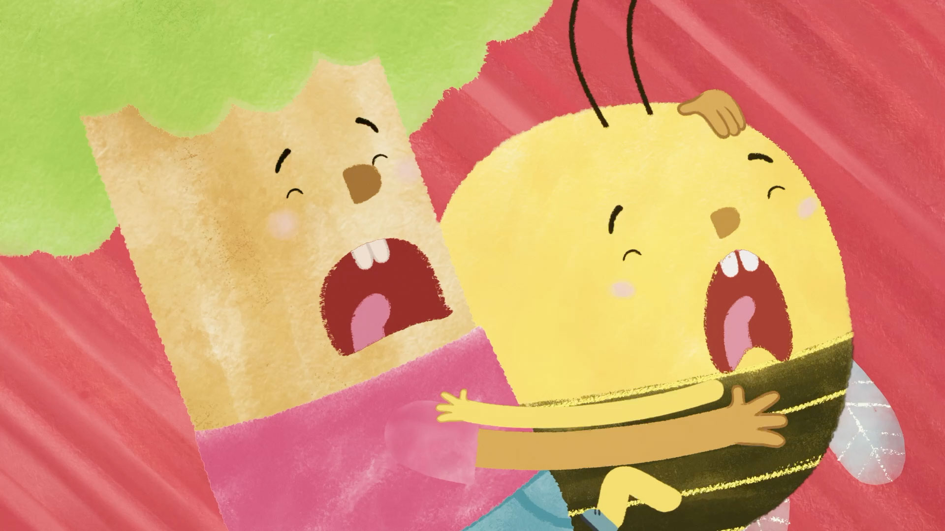 Tree & Bee (26×7) is a laugh-out-loud 2D watercolour show in which two best friends ponder life’s big (and small) questions with comical levels of earnestness and enthusiasm, always finding the answers in surprising ways. To Tree and Bee, all ordinary activities take on action-movie-like levels of excitement, energy and intensity.